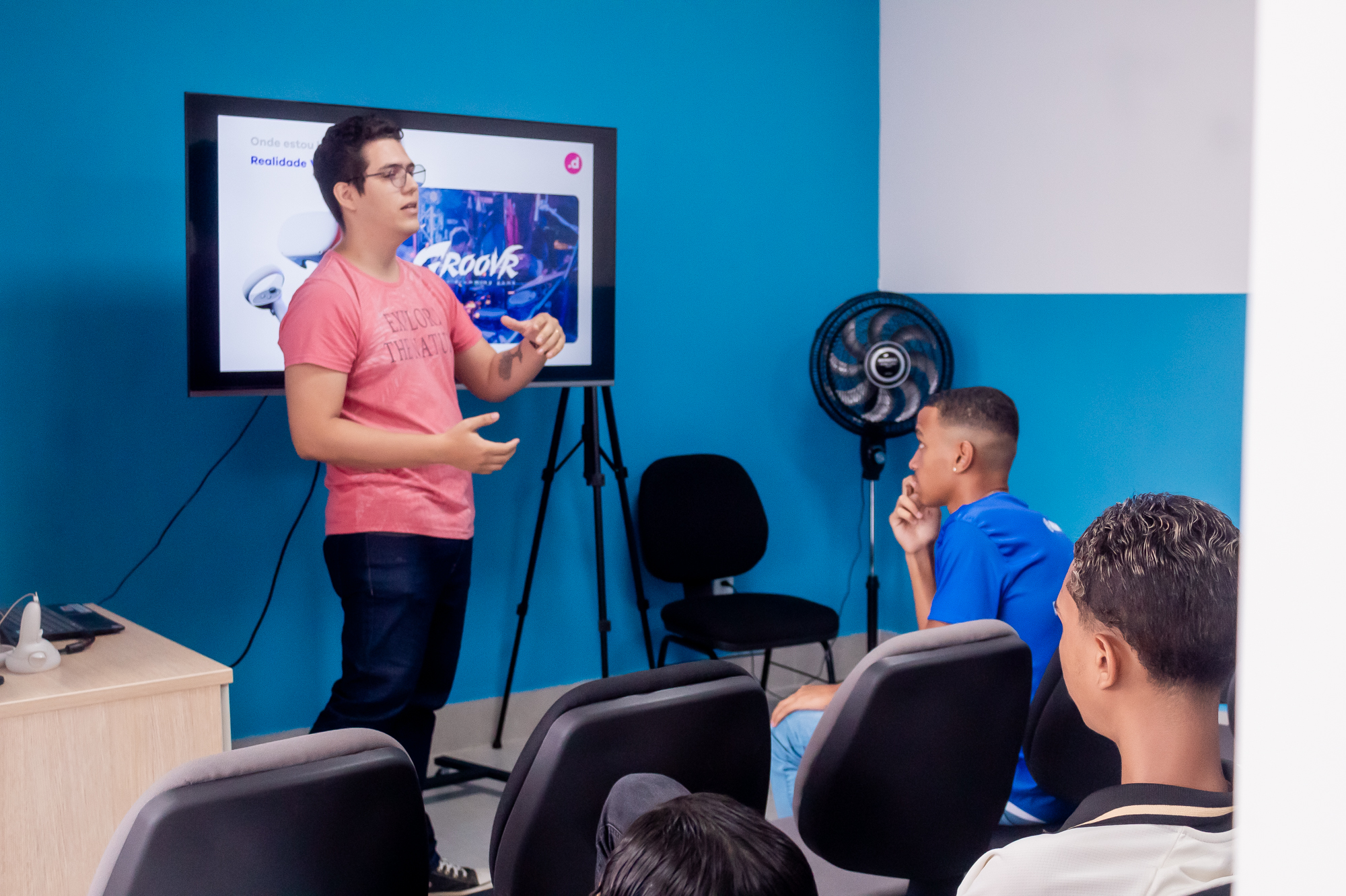 The purpose of the lecture was to bring students closer to a professional active in the technology job market and to address a little about what the gaming technology area and its job market are like.